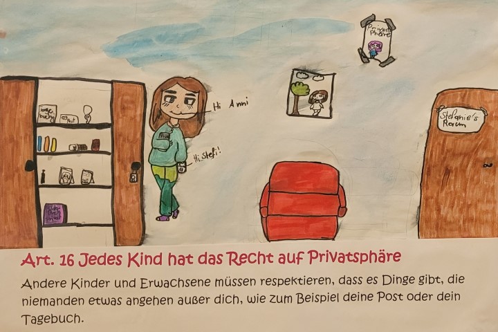 Die 2. Klassen unsere Schule wurden für das Projekt „Kinderrechte für ALLE sichtbar machen“ – einer Kinderrechteausstellung, ausgezeichnet. Beide Klassen gestalteten im Zeichenunterricht Bilder zu den wichtigsten Kinderrechten und präsentierten diese in Form einer Ausstellung am Elternsprechtag (im Mai 22). Ziel war es, Kinderrechte und Kinderschutz bei allen Besucher*innen des Elternsprechtages bekannter zu machen. Ihr Einsatz für die Kinderrechte wurde von der Jury mit einem Preisgeld von 800,- € belohnt.