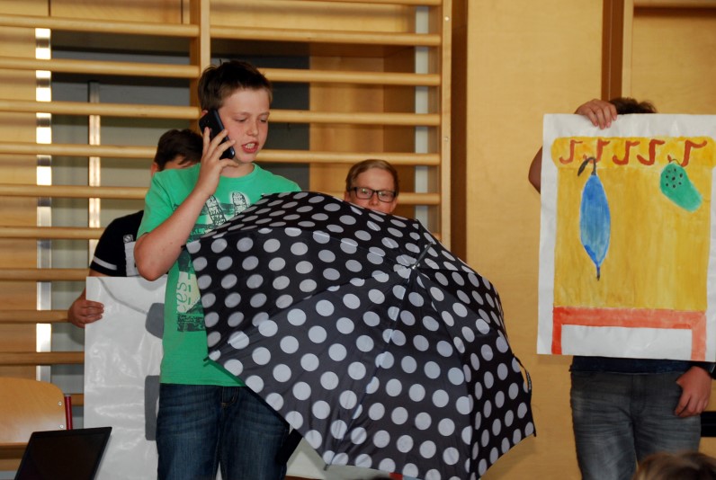 Märchen der anderen Art, Witze am laufenden Band, Balladen und viele andere Themen wurden auf humorvolle Weise dargeboten. All das wurde durch liebevoll gestaltete Malereien unterstrichen. Sogar für musikalische Abwechslung wurde gesorgt. Alle, die unsere Schule kennen, fühlen sich bestimmt an den Schulschwerpunkt Kreatives Gestalten erinnert.