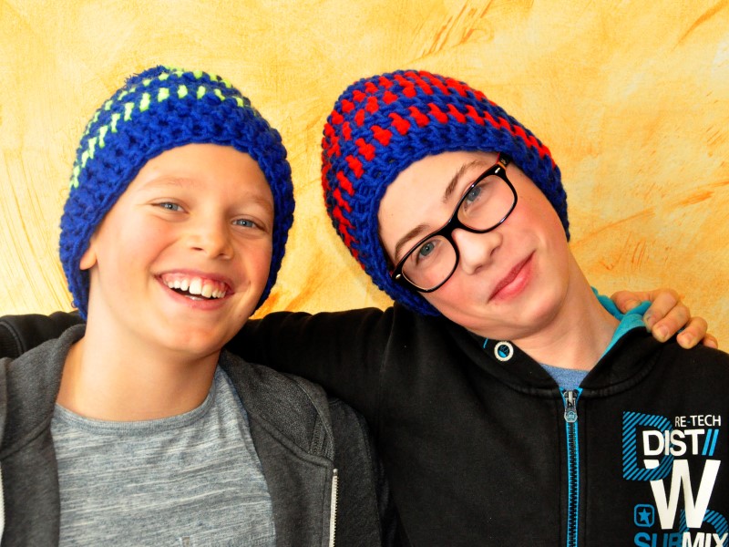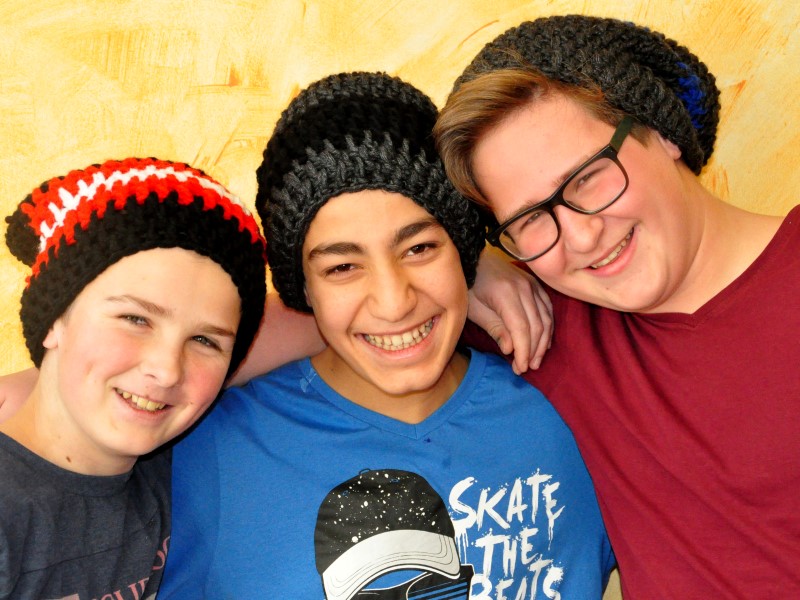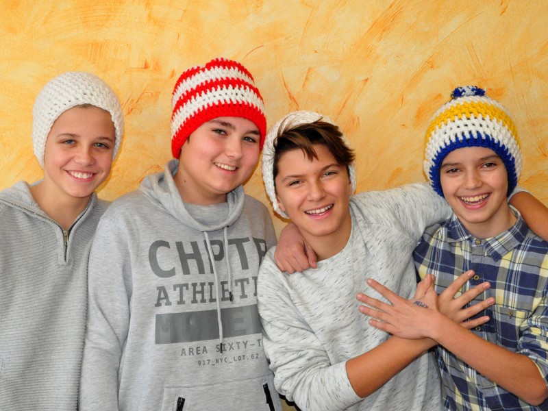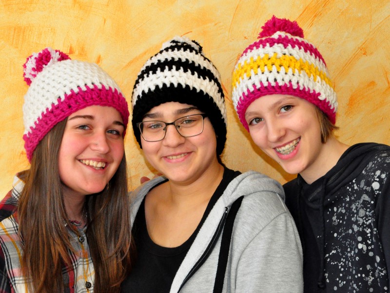 Mit Feuereifer und großer Ausdauer häkelten sich die Schüler und Schülerinnen der 3A und 3B unter der fachkundigen Anleitung von Hannelore Hirscher "a fesche, neie Haubn". Auch die "Männer in den Klassen" haben sichtlich Spaß an der neuen Kopfbedeckung.