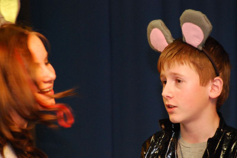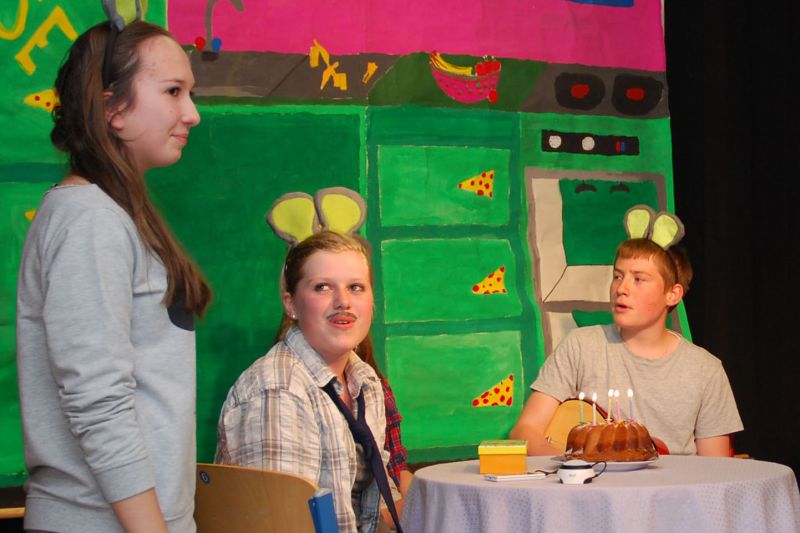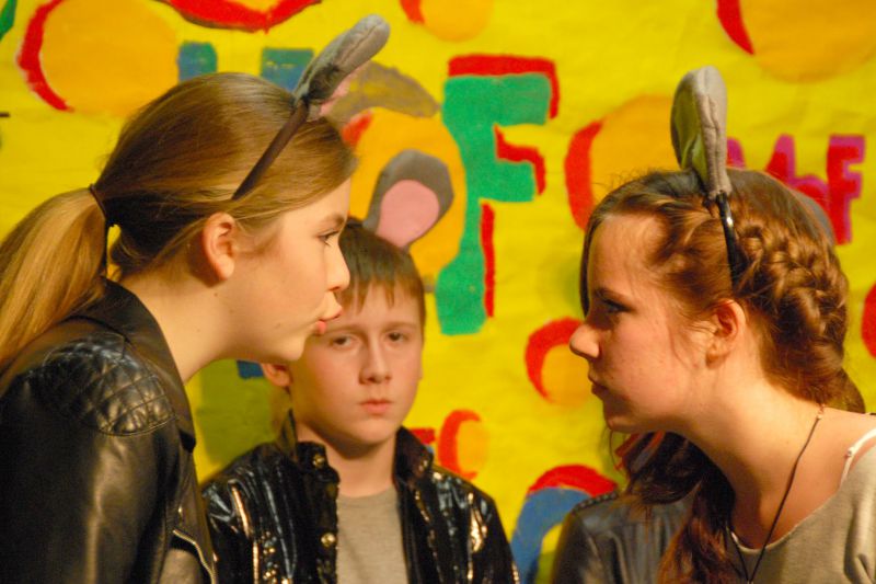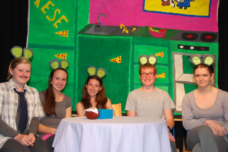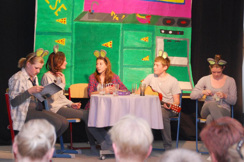 Grüne oder rosa Ohren bestimmen, ob man "in" oder "out" ist. Alles dreht sich um das Anderssein, um Ausgrenzung und Vorurteile. Natürlich gibt es ein versöhnliches Ende! Die Schüler der 3A und der 3B zeigten in dieser "Parabel" ihr ganzes schauspielerisches Können. Vor den interessierten Eltern konnte jeder in mehr oder weniger großen Rollen sein Talent zeigen. Burgi Wögerbauer und Gernot Wehrberger ist es gelungen, alle Schüler einzubinden. Wirklich jeder Schüler hatte seine Aufgabe in dieser Produktion. Auf das Theaterstück bekommt man zwar keine Noten, doch für die Persönlichkeitsentwicklung und den Teamgeist in einer Klasse ist ein derartiges Projekt von unschätzbarem Wert. Die Herausforderung ist es, "jedem Schüler" seinen Platz zu geben. Gratulation an alle Beteiligten für dieses gelungene Projekt.