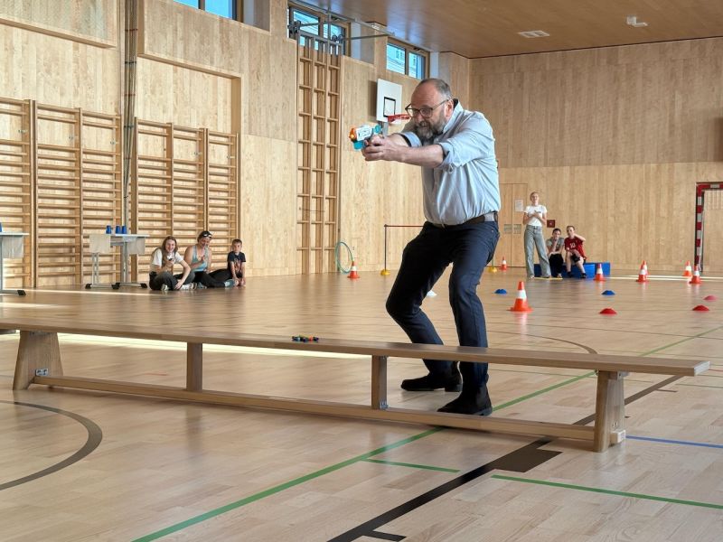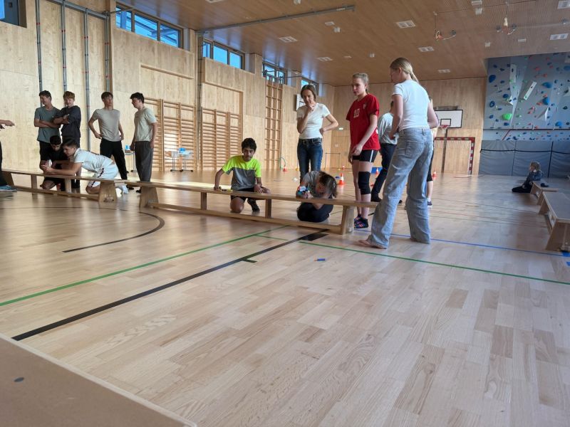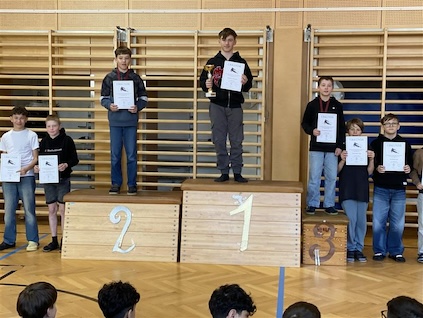 Am Freitag, den 02. Mai stand dann eine Schulolympiade auf dem Programm, an der alle Klassen und auch die LehrerInnen teilnahmen. Ein Wettbewerb bestehend aus Biathlon, Fußball, Völkerball, div. Wissensspiele und einiges mehr brachte am Ende die LehrerInnen als Sieger hervor. Der Siegespreis wurde natürlich an die SchülerInnen der 4b-Klasse weitergereicht, die als Zweitplatzierte den Wanderpokal entgegennehmen durften. In den unteren Schulstufen konnte sich die 2a-Klasse als Sieger über ihren Pokal gefüllt mit allerlei Süßem freuen.
