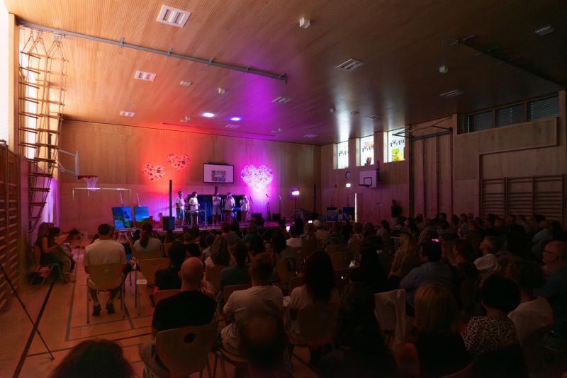 Am 27.Juni 2025 fand das erste Konzert der Schulband „THE HEARTFILLERS“ zusammen mit der Ausnahmekünstlerin ANNA BUCHEGGER statt. Der neue Turnsaal unserer Schule war vollgefüllt und die Heartfillers, gemeinsam mit Anna Buchegger und der 1a, 1b und 2a, sorgten für einen unterhaltsamen musikalischen Abend der besonderen Art.