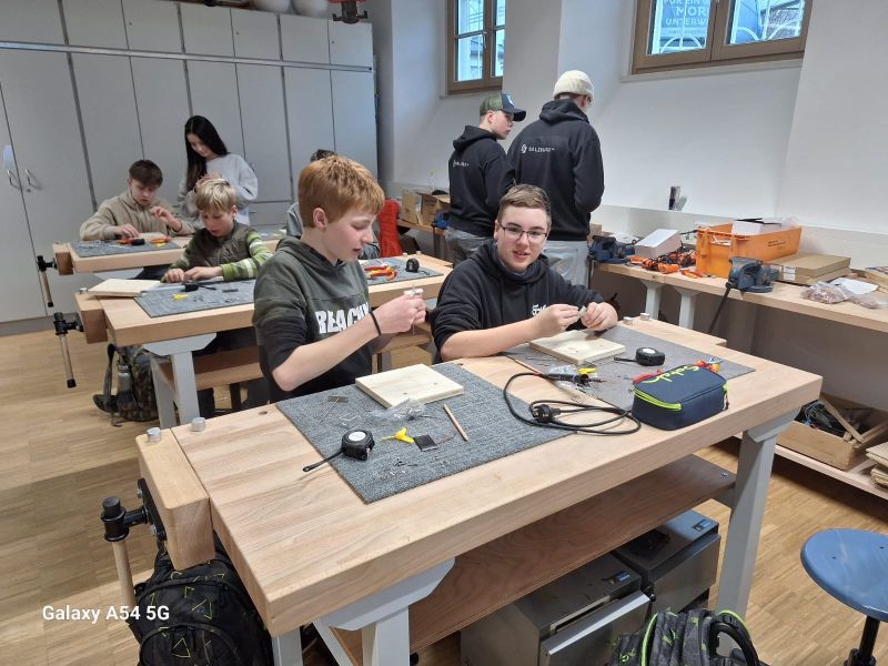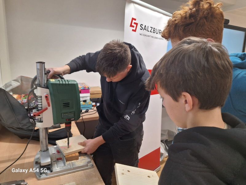 Gemeinsam mit Lehrlingen der Salzburg AG wurden Modelle von Wind- und Solarkraftwerken angefertigt. Gleichzeitig wurde den Jugendlichen die Wichtigkeit und die Möglichkeiten von innovativen Techniken zur nachhaltigen Stromgewinnung nähergebracht. Die SchülerInnen waren mit Feuereifer dabei und durften am Ende ihre Modelle mit nach Hause nehmen.